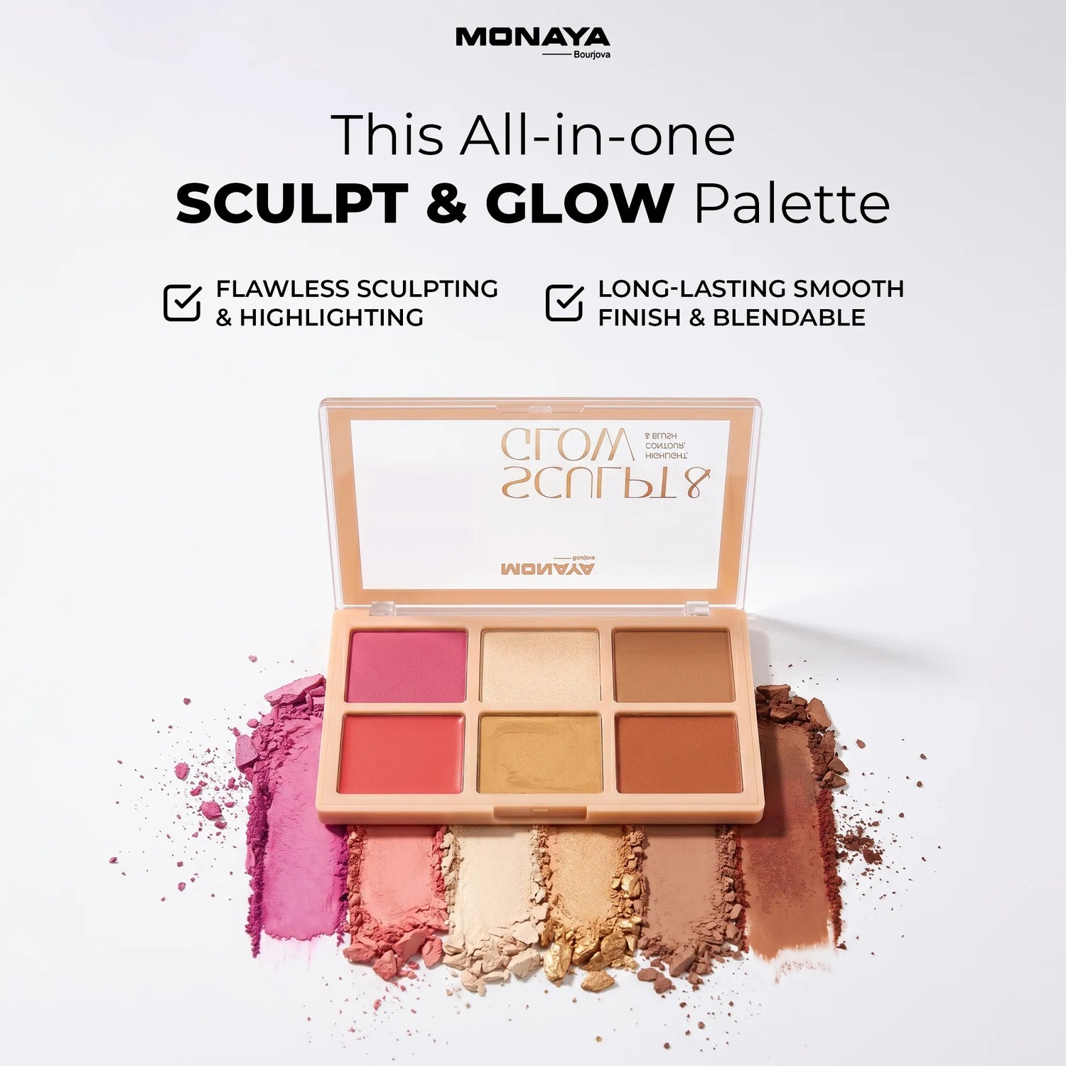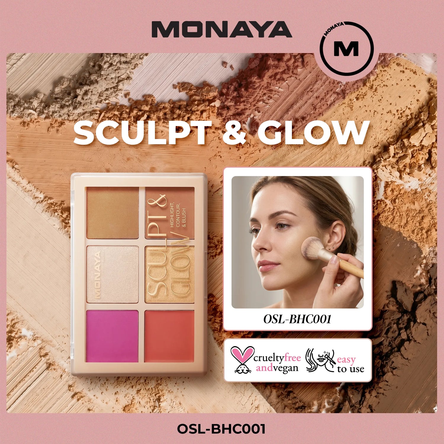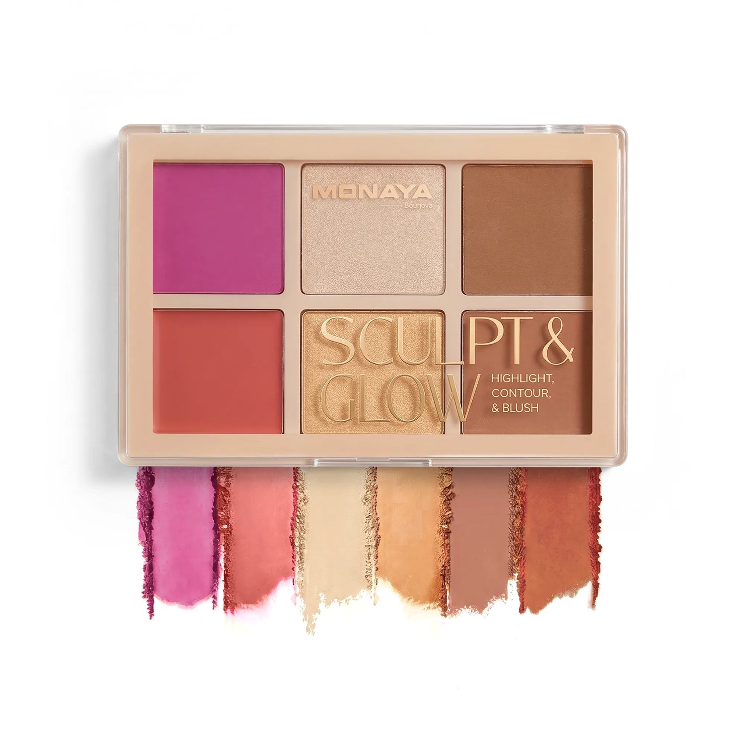 مونايا بورجوفا سكالبت آند جلو، لوحة تحديد الوجه، مكياج - أحمر خدود، هايلايتر، برونزر، بودرة، لوحة مكياج متكاملة، مجموعة تحديد الوجه - مستحضرات تجميل للوجه، هدايا للنساء، جمال للمهرجانات