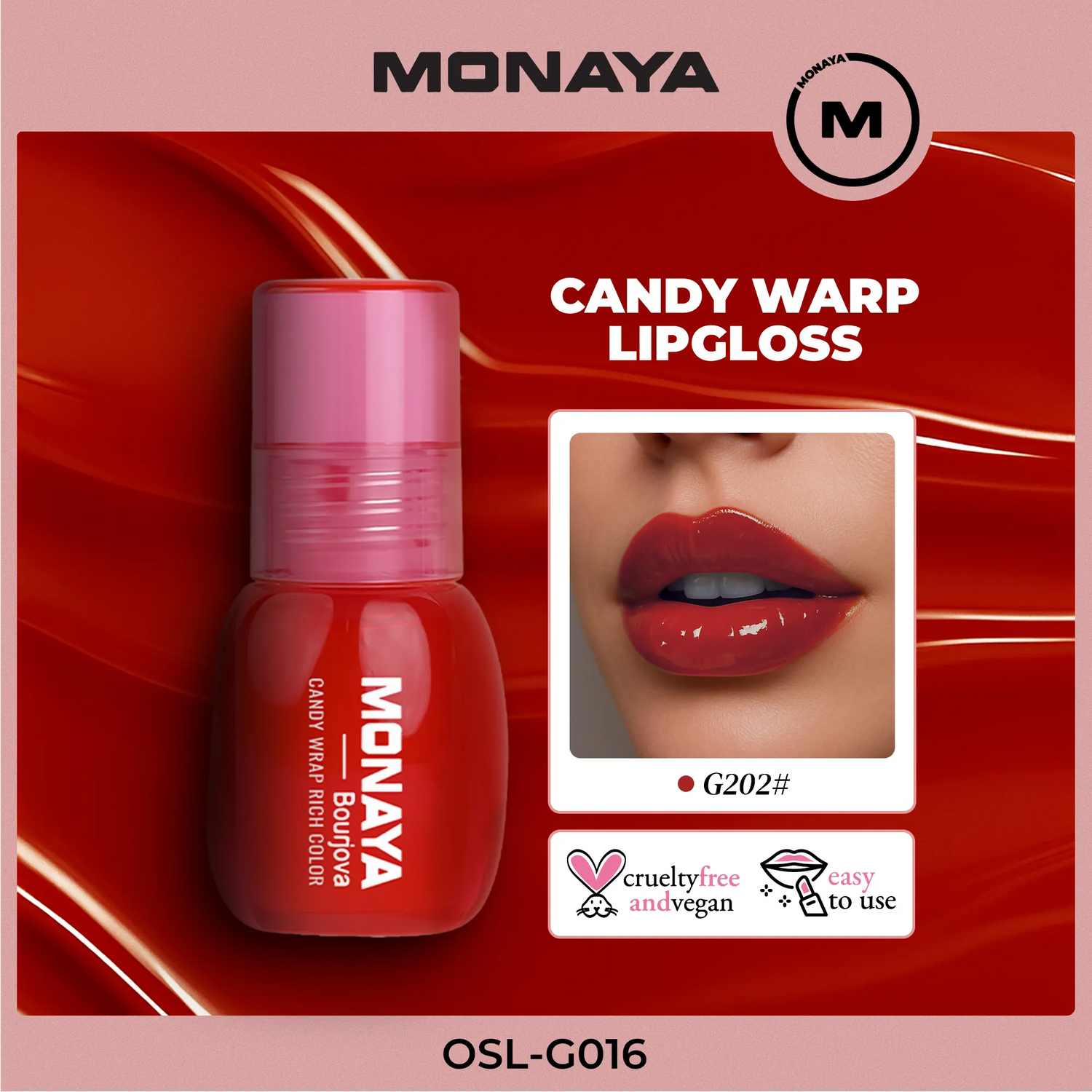 Monaya G016 Candy Wrap Rich Color Lip Gloss – High Shine, Moisturizing, Long-Lasting, Non-Sticky, Lip Care, Professional Makeup