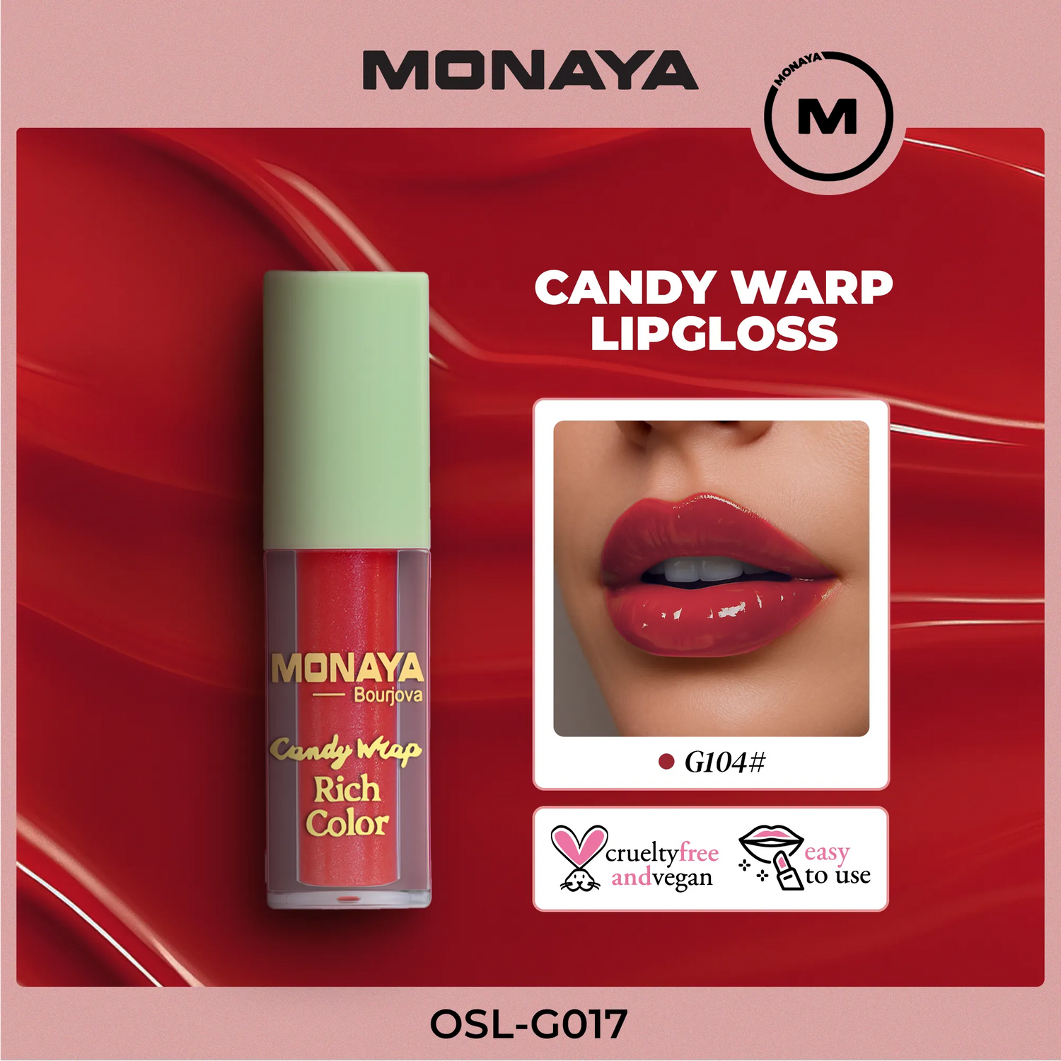 Monaya G017 Candy Wrap Rich Color Lip Gloss – High Pigment, Moisturizing, Long-Lasting, Non-Sticky, Glossy Finish, Lip Care, Cruelty-Free