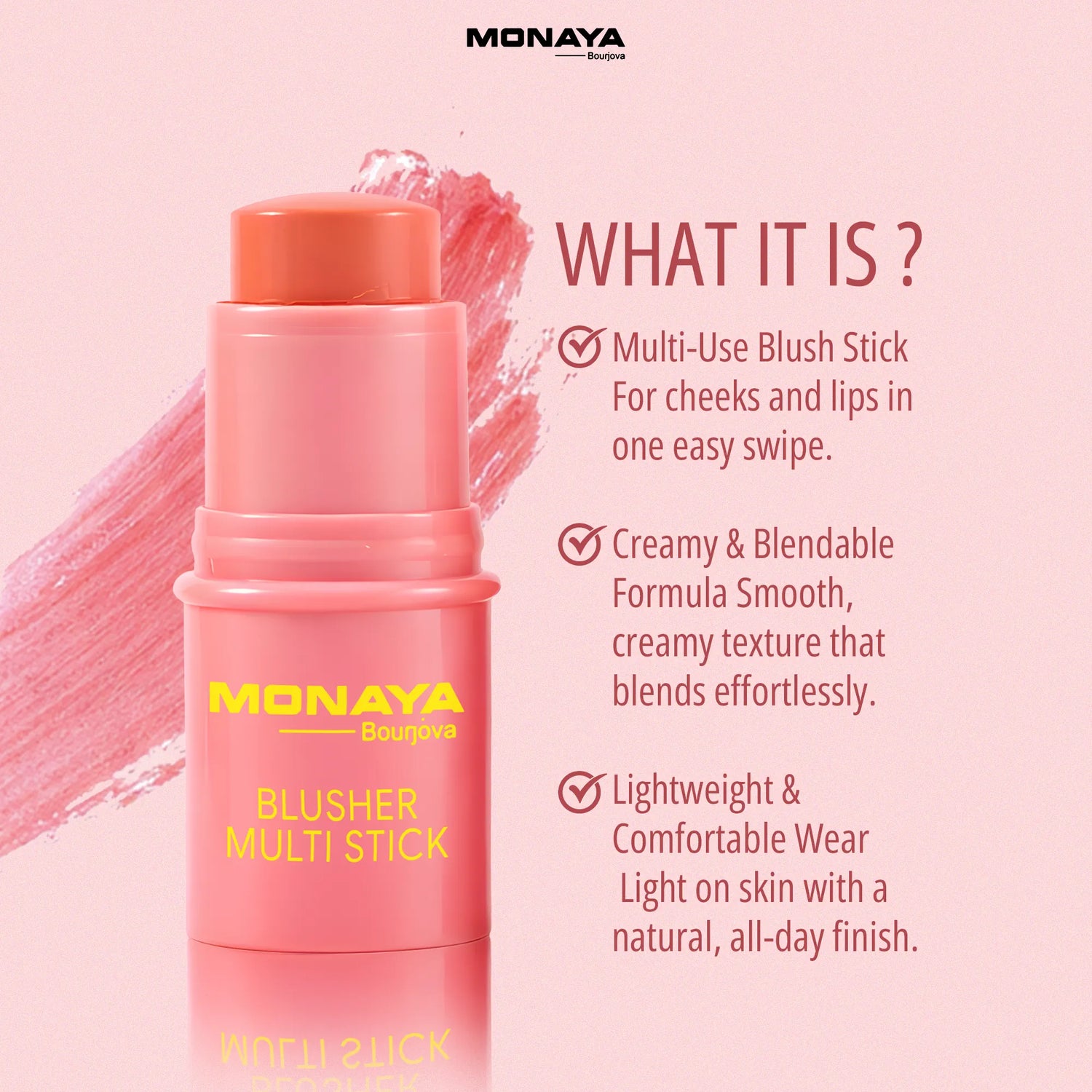 Blusher Multi Stick – Cream Blush Stick for Cheeks & Lips, Natural Finish, 6 Shades - S006